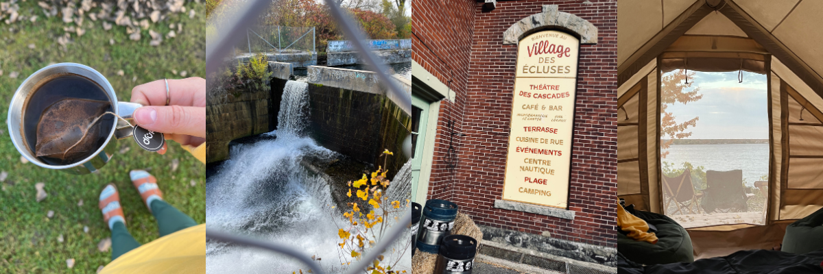Besoin de calme, besoin d’aventure, besoin de relaxer … 2 clics et voilà notre séjour au camping du Village-des-écluses à Pointe-des-Cascades est réservé ! Je sais je sais, on est fou d’y aller en plein mois d’octobre, mais croyez-moi ça en valait la peine ! Le bruit du vent dans les feuilles, de l’eau et des flammes, tous les éléments étaient présents pour la détente.