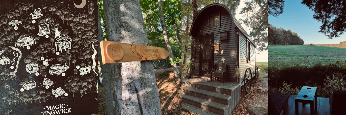 Les coups de foudre existe, croyez-moi. Dès le moment où nous sommes arrivés dans le stationnement de Magic Tingwick et que nous avons vu notre boîte aux lettres pour l'observatoire, nous nous sommes transportés dans un autre univers. Un petit repérage des lieux et nous voilà les pieds dans la forêt pour se rendre à notre cabane.