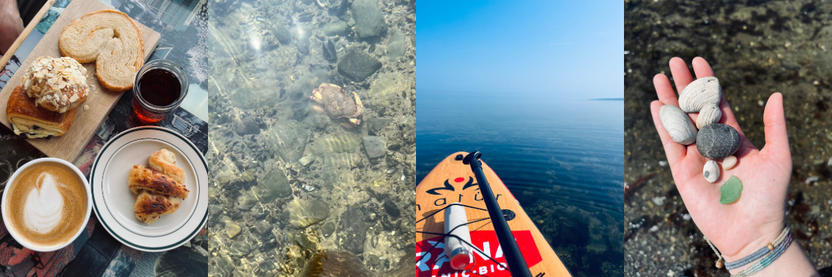 Après une petite couche de crème solaire, on suit la route des navigateurs afin de se trouver un petit coin pour sortir nos embarcations. C’est finalement à Sainte-Luce, que nous avons un coup de cœur pour la vue, j’en ai profité pour sortir mon paddle bord. L’eau du fleuve est tellement claire que l’on a pu y voir des crabes, des étoiles de mer et même un homard. Je sais je sais, vous me direz qu’un rien m’impressionne, mais c’était tellement plaisant de voir l’écosystème marin.