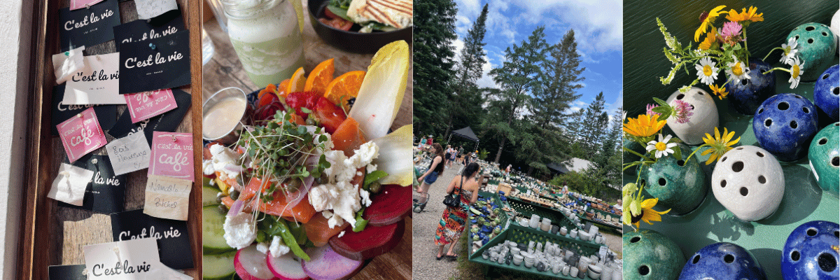 Une terrasse bien bondée et un nom sympathique nous a attiré vers le café C'est la vie lorsque nous étions de passage à Val-David. Une fois assise nous avons été agréablement surprises de voir tous les choix qu'on nous offrait dans le menu. J'ai opté pour la salade gaspésienne avec un matcha glacé. Mon amie, le sandwich nanini avec un rafraichissant mojito. Très contente de cette découverte !!!